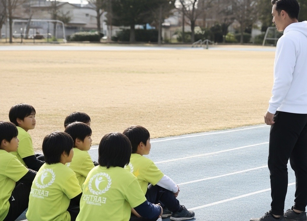 アースでは陸上競技を通じてを「心の成長」を第一に指導しています。1⼈の⼈間として、そしてアスリートとしてどれも⽋かせない⼤切なことです。